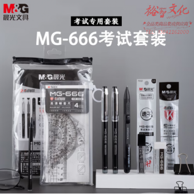 晨光(M&G)HAGP0883 文具学生考试套装(中性笔+替芯+涂卡笔+套尺量角器+橡皮) MG666系列黑色 SKU:yzwhyp106933