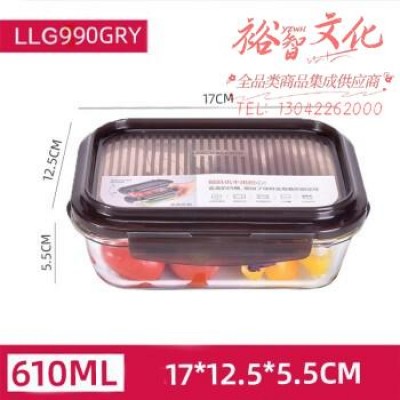 乐扣乐扣LLG990GRY 玻璃保鲜盒 耐热分隔保温密封微波炉汤碗水果盒饭盒便当盒 无分隔*长*(610ml) 玻璃透明 SKU:yzwhyp313578