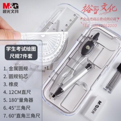 晨光(M&G)ACS90877 学生考试绘图套装(圆规+橡皮+直尺+三角尺/尺子+量角器)组合装 开学文具 7件套 SKU:yzwhyp106976