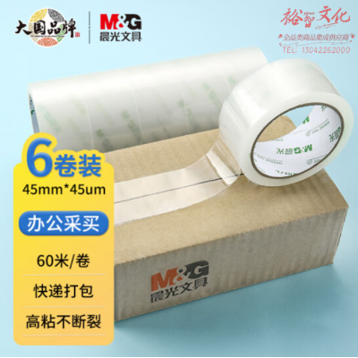 晨光(M&G)AJDN7604 透明封箱胶带45mm*60m*45um 6卷/筒装 SKU:yzwhyp106983