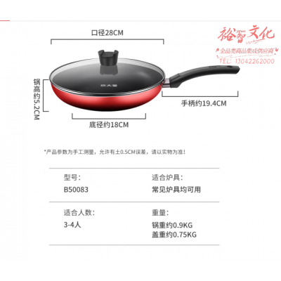 炊大皇煎锅不粘锅28cm平底锅煎盘中国红少油烟电磁炉燃煤明火通用B50083 SKU:yzwhyp313873