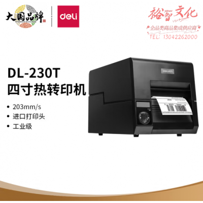 得力(deli)DL-230T工业级热敏+热转印双模打印机 4吋 203MM/S SKU:yzwhyp602701