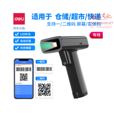 得力(deli)14970有线一二维条码扫码枪(黑)(台) SKU:yzwhyp602726