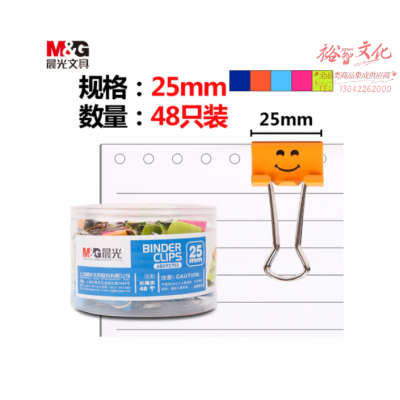 晨光(M&G)ABS92703 25mm 48只/罐 彩色可爱笑脸长尾夹 SKU:yzwhyp107190