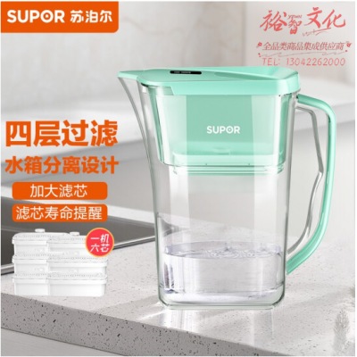 苏泊尔(SUPOR)J-UF01 过滤净水器 家用滤水壶 自来水过滤器净水壶 (绿色)一壶六芯 SKU:yzwhyp314073