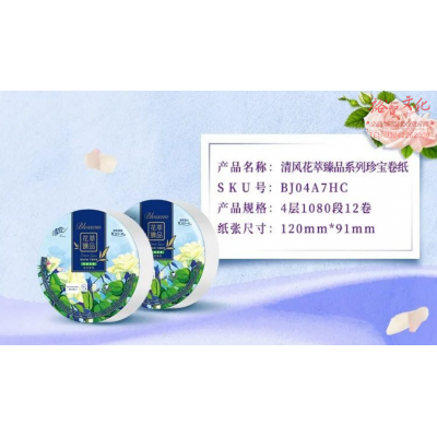 清风【BJ04A7HC】花萃臻品4层珍宝卷纸 大盘卷纸 4层3卷/提*4提/箱(整箱销售) SKU:yzwhyp107254
