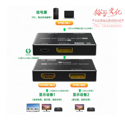 毕亚兹 DP分配器一分二 DP转HDMI/DP 1进2出支持扩展 8K高清视频分屏器 台式机显卡接电视投影仪 ZH131 SKU:yzwhyp107396