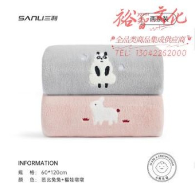 三利婴儿童浴巾2条吸水速干儿童洗澡超软新生宝宝大毛巾 SKU:yzwhyp314338
