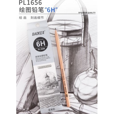宝克(baoke)PL-1656 6角绘图铅笔6H 美术生素描手绘速写铅笔素描铅笔 12支/盒