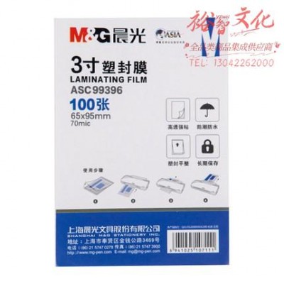 晨光(M&G)ASC99396 3寸/100张 70mic透明高清塑封膜 65*95mm文件照片过塑膜 SKU:yzwhyp107449