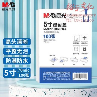 晨光(M&G)ASC99395 5寸/100张 70mic透明高清塑封膜 95*135mm文件照片过塑膜 SKU:yzwhyp107476
