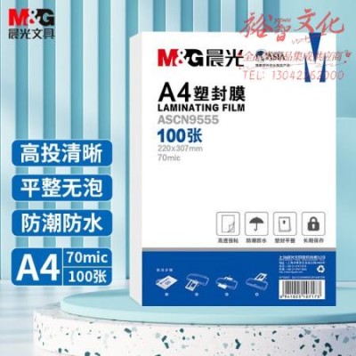 晨光(M&G)ASCN9555 A4/100张 70mic透明高清塑封膜 220*307mm文件照片过塑膜优质专用护卡膜 SKU:yzwhyp107478