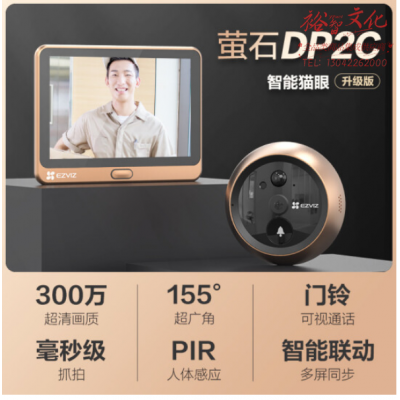 萤石 DP2C-3MP 智能猫眼摄像头 300万超清 电子猫眼 可视门铃防盗门监控 远程可视通话 SKU:yzwhyp314541