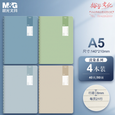 晨光(M&G)FA5487 A5/40张笔记本 缝线本 淡染4本装 SKU:yzwhyp107503