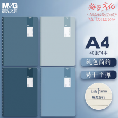 首页 > 办公用品 > 文具 > 晨光(M&G)FA4415 A4/40张加厚缝线 横线米黄内页 靛染系列4本装 SKU:yzwhyp107514