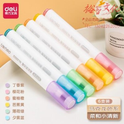 得力(deli)33002 6色柔彩荧光笔套装 醒目标记笔 手帐可用水性记号笔6支/盒 SKU:yzwhyp107575