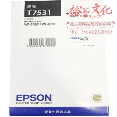 爱普生(EPSON)T7531 黑色墨盒 (适用WF-6093/6593/8093/8593机型)约10000页 SKU:yzwhyp107594