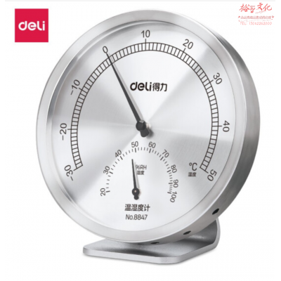 得力(deli)8847 金属室内温湿度计 挂立两用免电池大表盘 SKU:yzwhyp107660
