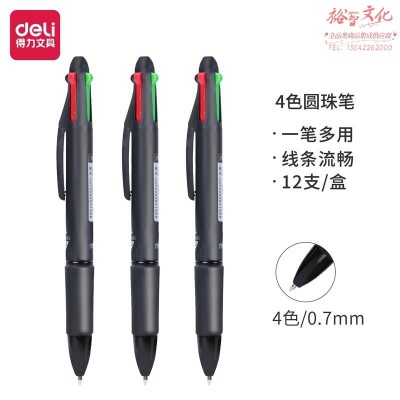 得力(deli)33390 多功能4色圆珠笔 0.7mm子弹头按动笔原子笔中油笔 (黑红蓝绿) 12支/盒装 SKU:yzwhyp107678