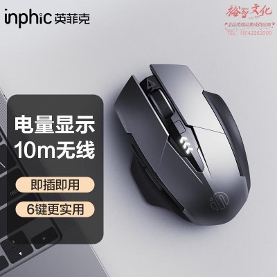 英菲克(INPHIC))PM6二代 无线鼠标可充电轻音办公人体工学 电量显示 电脑台式笔记本2.4G通用便携 灰 SKU:yzwhyp107718