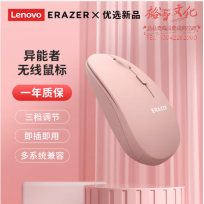 联想(Lenovo)异能者 无线鼠标 家用商务办公 笔记本台式机 USB接口 即插即用 鼠标无线 N300【蜜桃粉】 SKU:yzwhyp107773