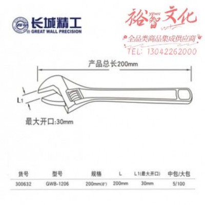 长城精工活动扳手8寸多功能大开口活扳手活口扳手 SKU:yzwhyp314933