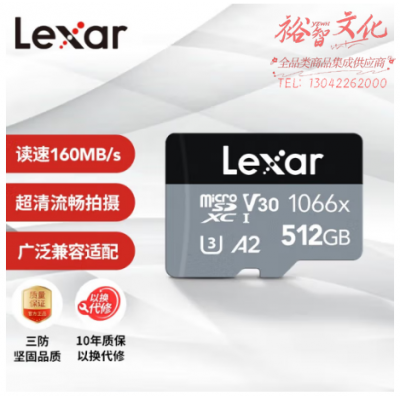首页 > 信息化设备 > 移动存储设备 > 雷克沙(Lexar)512GB TF(MicroSD)存储卡 U3 V30 A2 读160MB/s 写120MB/s 高速内存卡 超清录制(1066x) SKU:yzwhyp314936
