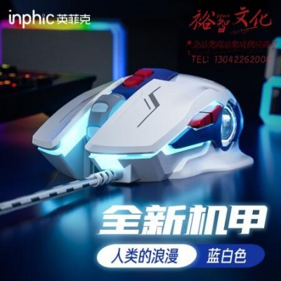 英菲克(INPHIC)W9有线游戏鼠标 轻音鼠标 电竞宏 七彩呼吸灯效 人体工学 绝对求生CF吃鸡LOL 机甲白 SKU:yzwhyp107814