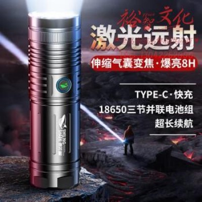 微笑鲨605 强光手电筒白激光可充电多功能远射探照灯家用户外便携LED SKU:yzwhyp314977