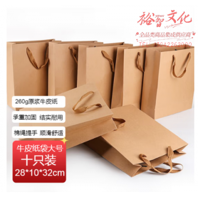 首页 > 办公用品 > 文具 > 牛皮纸手提袋 纯色无字28*10*32cm 10个装 SKU:yzwhyp315013