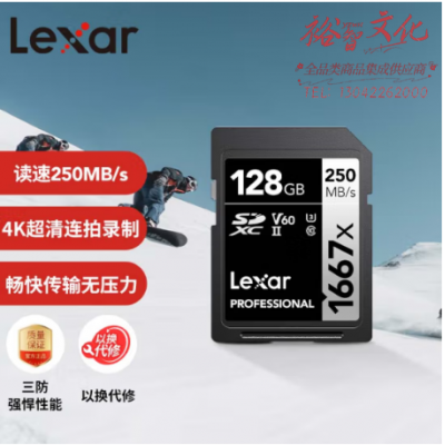 首页 > 信息化设备 > 移动存储设备 > 雷克沙(Lexar)128GB SD存储卡 U3 V60 4K数码相机内存卡 读250MB/s 写120MB/s 双排金手指(1667x Pro) SKU:yzwhyp315051
