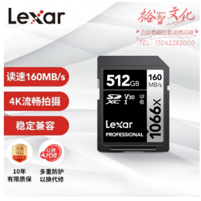 首页 > 信息化设备 > 移动存储设备 > 雷克沙(Lexar)512GB SD存储卡 C10 U3 V30 读160MB/s 写120MB/s 快上加稳4K流畅拍(1066x) SKU:yzwhyp315063