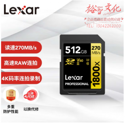 首页 > 信息化设备 > 移动存储设备 > 雷克沙(Lexar)512GB SD存储卡 C10 U3 V60 数码相机高速内存卡 读270MB/s 写180MB/s 4K畅拍(1800x) SKU:yzwhyp315069