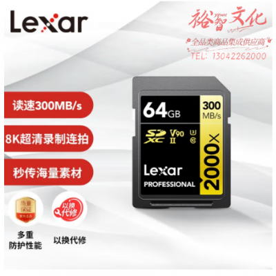 首页 > 信息化设备 > 移动存储设备 > 雷克沙(Lexar)64GB SD存储卡 U3 V90 8K视频摄像相机内存卡 读300MB/s 写260MB/s 高速读取录制(2000x) SKU:yzwhyp315070
