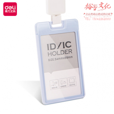 得力(deli) 64803 时尚款竖式证件卡套 高透亚克力可伸缩挂绳员工证卡套 蓝色一只装 SKU:yzwhyp107988
