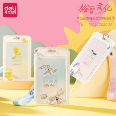 得力(deli)PZ102 竖式证件卡套 兔八哥系列 棉挂绳短绳款 混色单只装 SKU:yzwhyp108005