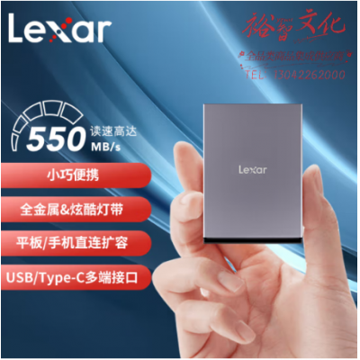 首页 > 信息化设备 > 移动存储设备 > 雷克沙 (Lexar )500G Type-c USB3.1 LSL210X500G-RNNNC 移动固态硬盘(PSSD) SL210 传输速度550MB/s 高档全金属 炫酷灯带 SKU:yzwhyp315325
