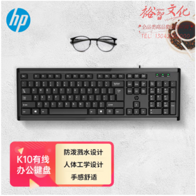 惠普(HP)键盘 有线办公键盘104键耐磨防泼溅水 人体工学手感舒适高效办公游戏键盘K10 SKU:yzwhyp108078