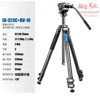 徕图(Leofoto)LV-323C+BV-10 黑曼巴佳能尼康单反相机专业摄影摄像碳纤维快调水平三脚架 SKU:yzwhyp315430