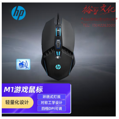 惠普(HP) 有线 发光鼠标USB办公台式机电脑笔记本 自定义宏 M1黑色微声 SKU:yzwhyp108198