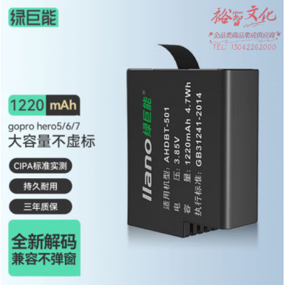 绿巨能(llano)GoPro5运动相机电池LJN-SM015 hero5/hero6/hero7数码摄像机可充电电池 SKU:yzwhyp315465