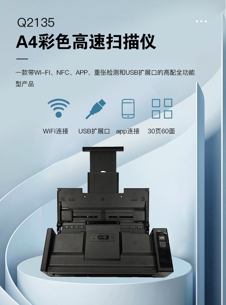 紫光Q2135 馈纸扫描仪 A4幅面高速高清彩色双面无线wifi便携式批量扫描仪 SKU:yzwhyp108206