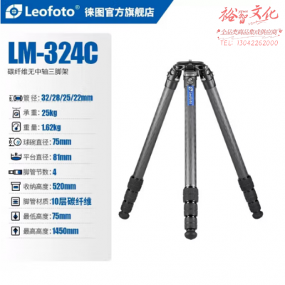 徕图(Leofoto)LM-324C 摄影摄像无中轴相机手机三脚架 SKU:yzwhyp315511
