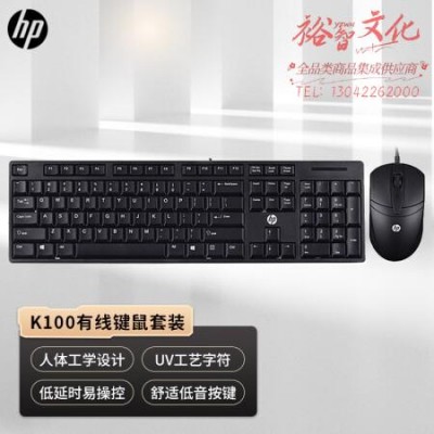 惠普(HP)K100有线USB接口商用超薄键盘鼠标套装 笔记本台式电脑通用办公键鼠套装黑色 SKU:yzwhyp108259
