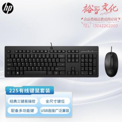 惠普(HP)商用225有线键鼠套装 笔记本台式机USB接口键盘鼠标套装 104键标准键盘 黑色 SKU:yzwhyp108260
