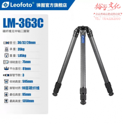 徕图(Leofoto)LM-363C 轻量便携观鸟长焦摄影摄像碳纤维无中轴三脚架 SKU:yzwhyp315537
