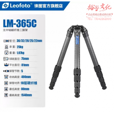 徕图(Leofoto)LM-365C 轻量便携观鸟长焦摄影摄像碳纤维无中轴三脚架 SKU:yzwhyp315542