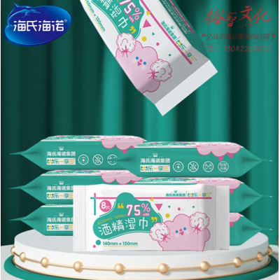 海氏海诺 75%酒精湿巾 一次性消毒酒精棉片大号 14*15cm*8抽*8袋/提 SKU:yzwhyp108292