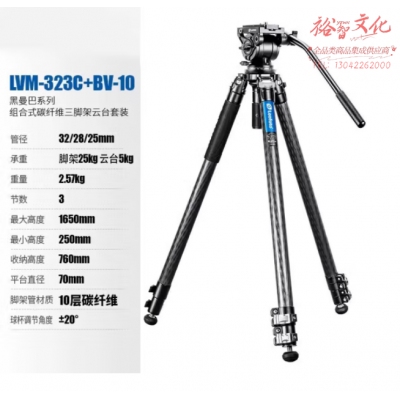徕图(Leofoto)LVM-323C+BV-10 黑曼巴微单反相机摄像拍视频专业碳纤维三脚架搭配液压云台套装 SKU:yzwhyp315568