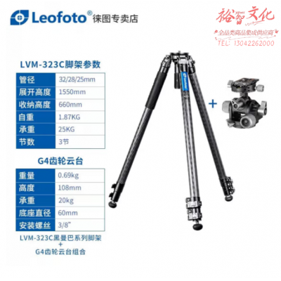徕图(Leofoto)LVM-323C+G4 黑曼巴微单反相机摄像拍视频专业碳纤维三脚架搭配液压云台套装 SKU:yzwhyp315573